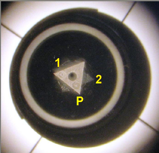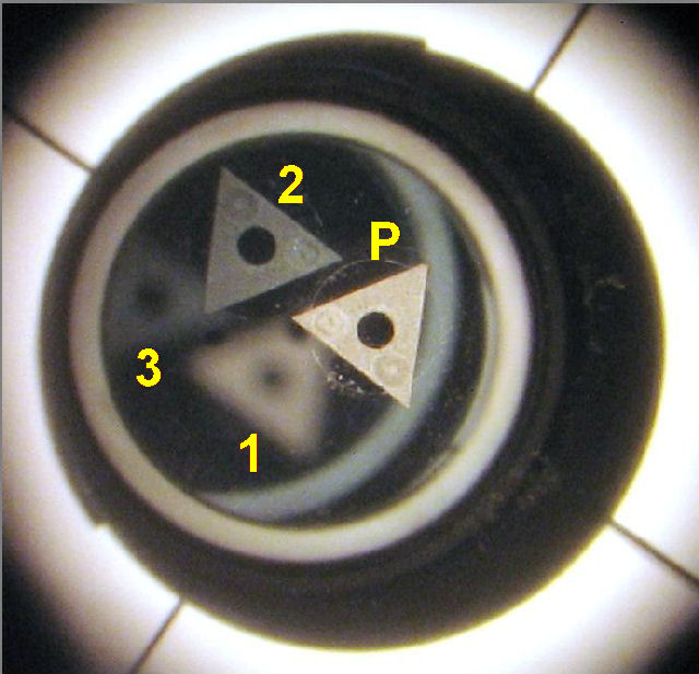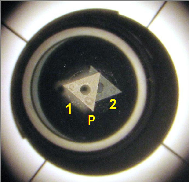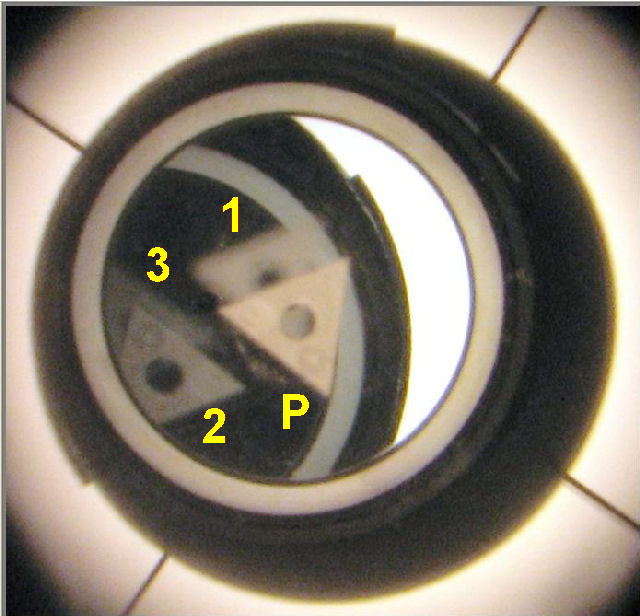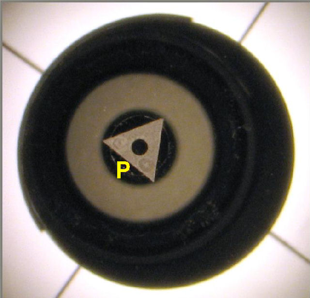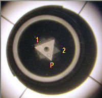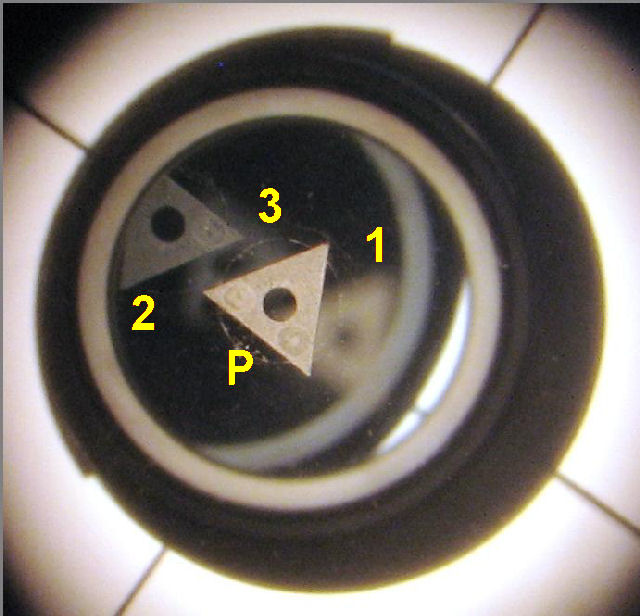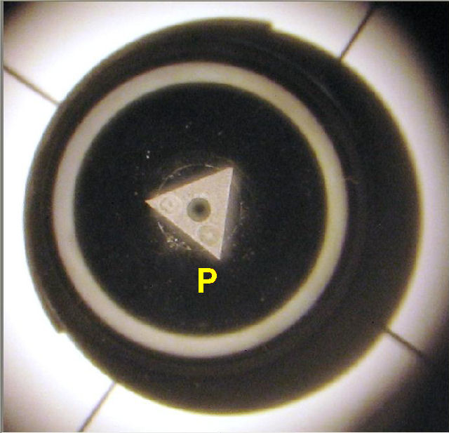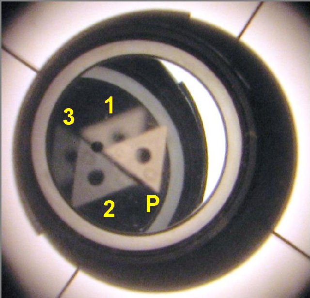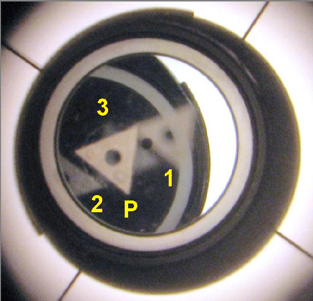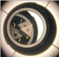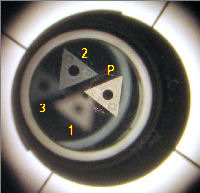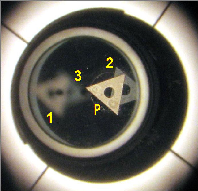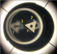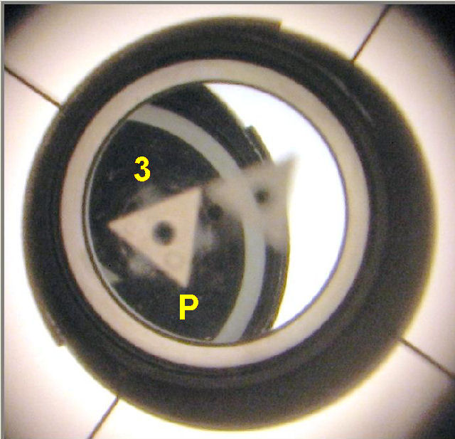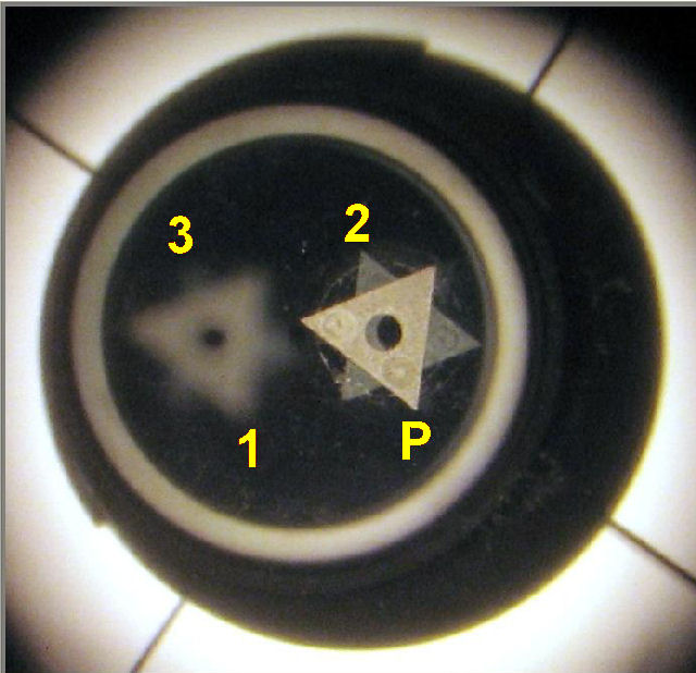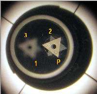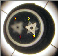 After carefully repeating steps 2 - 5, ensure only reflection "P" is visible in the CENTRAL pupil and perfect hexagrams appear in the OFFSET pupil.