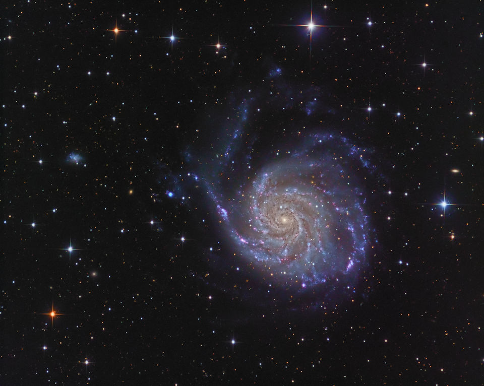 3/20/2018 - "... I captured M101 (Fireworks Galaxy) for 5,5h with my 10" Newtonian reduced to f/3.5 with the 0.73xASA-Reducer, ATIK460EXm on my G11. Temperature was around -3deg Celsius and winds around 10km/h. I squeezed it through PixInsight and I'm happy to see a "PERFECTLY collimated galaxy". Your toolset was totally save and uncomplicated to use as the night before! The only downside of the picture are some hotpixels which I didn't exterminate because I only used flats but no darks and no bias..."